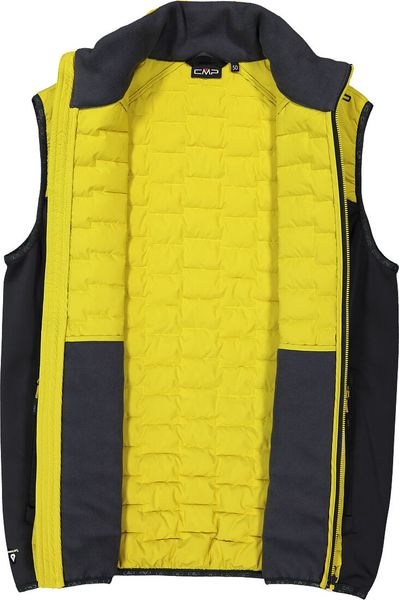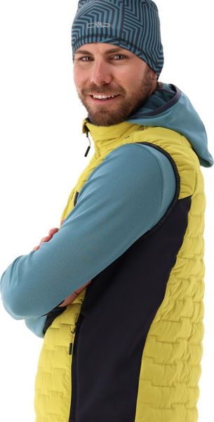 "The MAN Vest Hybrid from CMP is the ideal choice for men who are looking for a high-performance second layer for high-intensity outdoor activities. This hybrid vest is part of the Unlimitech line and combines innovative materials and well thought-out design. The padding is made from PrimaLoft Black Thermoplume, a material made from 100% recycled polyester. It offers the same lightweight warmth, softness and compressibility as glass feathers and at the same time stands for the sustainability of recycled fibers."