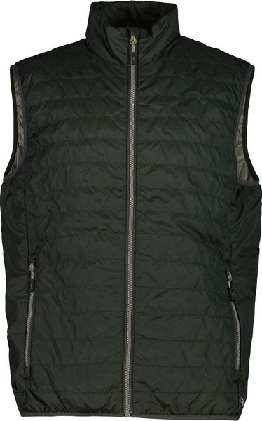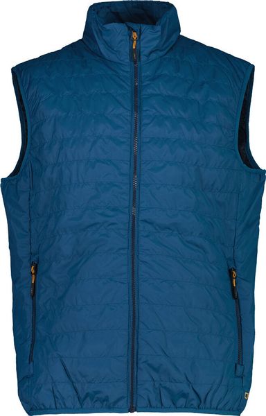 "Heat-insulating, water-repellent gilet with elasticated cuffs and practical zippered pockets for outdoor adventures."
