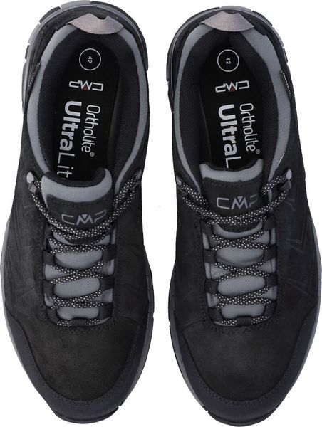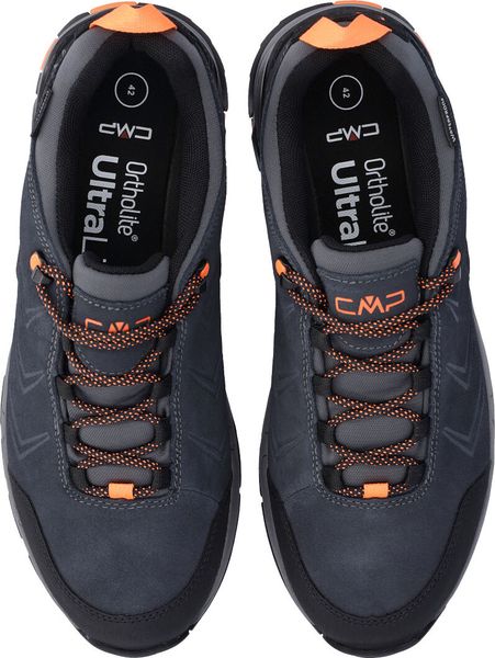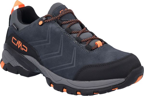"The Melnick Low Trekking Shoes WP from CMP are the ideal companion for men who are out and about on long trekking tours. These high-quality trekking boots combine comfort and functionality with a sporty design and eye-catching color details. The genuine suede upper not only ensures an appealing look, but also durability and protection. The rubberized reinforcements on the toe and side provide additional protection for the foot, while the waterproof CLIMAPROTECT membrane reliably protects against moistureu00e4."