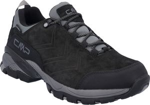 "The Melnick Low Trekking Shoes WP from CMP are the ideal companion for men who are out and about on long trekking tours. These high-quality trekking boots combine comfort and functionality with a sporty design and eye-catching color details. The genuine suede upper not only ensures an appealing look, but also durability and protection. The rubberized reinforcements on the toe and side provide additional protection for the foot, while the waterproof CLIMAPROTECT membrane reliably protects against moistureu00e4."