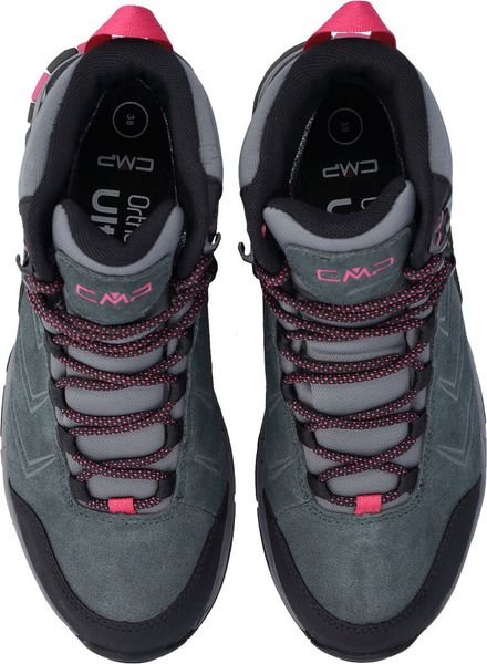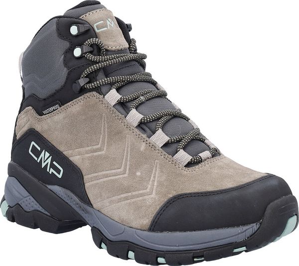 "The Melnick Mid WMN Trekking Shoes WP from CMP are the ideal companion for demanding trekking tours. These women's shoes combine a sporty design with functional features to offer you maximum comfort and protection. The high-quality suede upper is complemented by a waterproof CLIMAPROTECT membrane, which keeps your feet dry even in wet conditions. The rubberized reinforcements on the toe and side provide additional protection and durability"