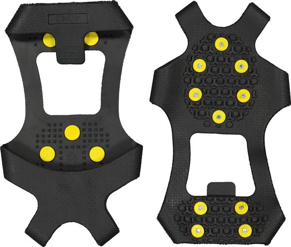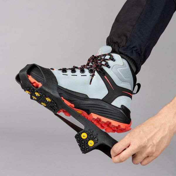 "Non-slip spikes with metal spikes for a secure grip on snow, ideal for winter outdoor activities."
