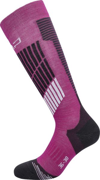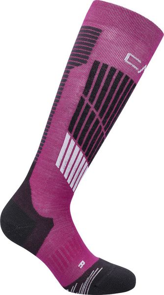 "Experience supreme comfort and protection on the slopes with the Ski Socks Graphene WMN from CMP. Specially designed for women, these ski socks combine innovative materials and sophisticated construction elements to offer you an unparalleled skiing experience. The socks are made from a high-quality polyamidebase enriched with graphene. This material not only makes them comfortable to wear, but also offers long-lasting protection and excellent heat regulation. The combination of graphene and wool guarantees that your feet stay dry and warm all day long"