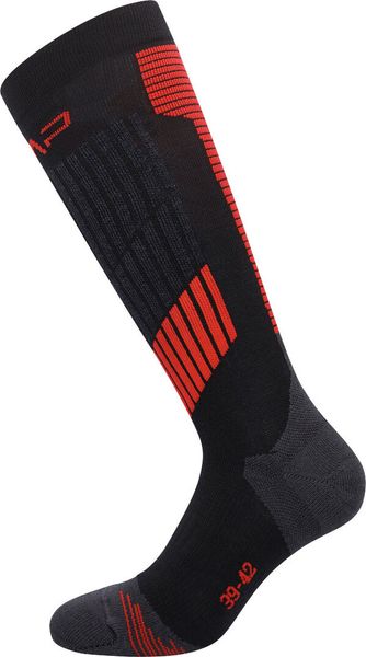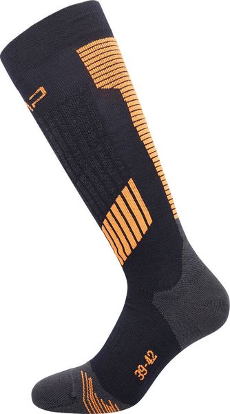 "Discover the ultimate in comfort and protection for your feet with the Ski Sock Graphene from CMP. These ski socks are specially designed for men and combine innovative materials and technologies to offer you an incomparable skiing experience. The socks are made from a high-quality polyamide base enriched with graphene. This combination not only ensures a comfortable fit, but also provides long-lasting protection and excellent heat regulation. Thanks to the natural properties of wool, your feet stay dry and warm all day long."