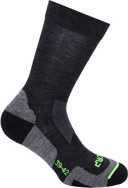 "Experience maximum comfort and protection on your trekking adventures with the high-quality Trekking Wool Socks from CMP. These calf socks are specially designed for men and offer an excellent fit thanks to their unique RIGHT and LEFT construction. The use of wool as the main material ensures that the socks keep you warm in cold weather and release excess heat and moisture in hot weather. This makes them ideal for longer tours and everyday use."