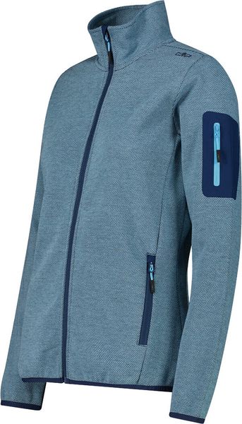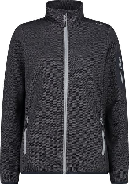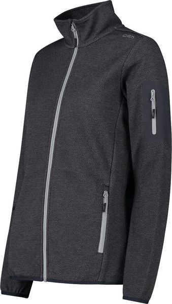 "The CMP women's jacket combines stylish design with maximum functionality and is the perfect companion for all four seasons. Thanks to the innovative Knit-Tech technology, this fleece jacket offers exceptional warmth and comfort. The sophisticated material mix of cotton and an internal mesh layer ensures that the jacket is not only lightweight but also particularly breathable. The melange fabric gives the jacket a modern look, while clever details such as the practical side pocket on the sleeve and the two large side pockets provide additional storage space and comfort. The jacket is ideal for outdooractivities and impresses with its unmistakable CMP Outdoor style, which perfectly combines functionalityu00e4t and fashionable flair."