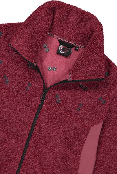 "Cozy fleece jacket in a fur look with floral motifs, ideal for stylish warmth and everyday comfort."