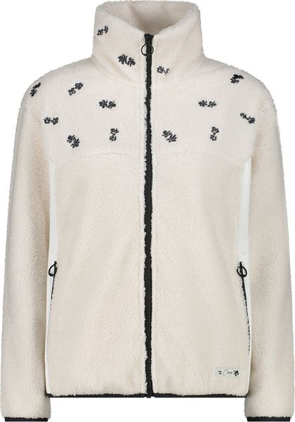 "The CMP ladies-fleece jacket in a fur-look is the perfect choice for style-conscious women who don't want to compromise on elegance and comfort even on cold days. The cosy, soft fabric of this jacket offers optimum protection against the cold and ensures a pleasant feel against the skin, even when temperatures drop. With its feminine design, decorated with floral motifs on the chest and shoulders, it adds a delicate and sophisticated touch"