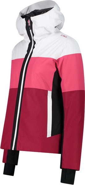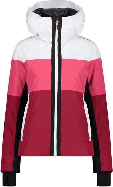 Twill ski jacket with fixed hood with internal regulation. The garment with Feel Warm Flat insulation has a PFC-free water repellent treatment and Clima Protect thermal laminate under the fabrics for waterproofing and breathability. The model features fully taped seams, a soft HighLoft fur lining on the back, a snow skirt and a windproof and abrasion-resistant zipper with flap. Three inside pockets, Lycra cuffs with thumb opening and a ski pass pocket on the sleeve complete the garment. A jacket with sporty style thanks to the color blocks, perfect for days in the snow.