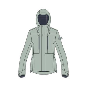 "Special features of the jacket are the fixed, adjustable hood and the welded seams, which provide additional protection against snow and water. Practical details such as the inner mesh pocket, the ski pass pocket on the sleeve and the two spacious front and side pockets make the jacket the perfect companion for winter sports. The front zip is equipped with an inner storm flap and external press studs to provide additional protection against the cold."