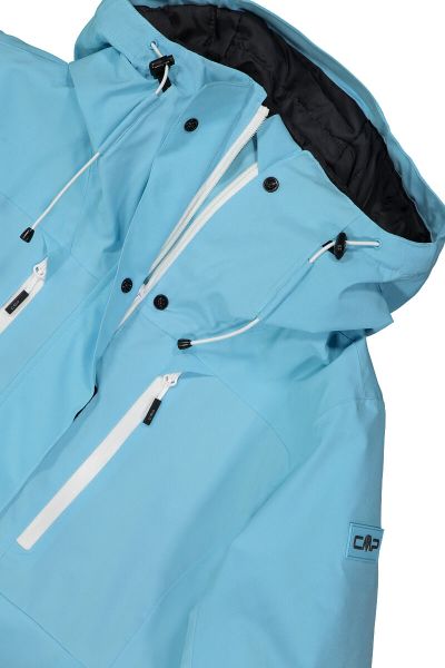 "The Woman Jacket FIX Hood from CMP is the ideal choice for all women who are passionate about skiing or snowboarding. This high-quality ski jacket made from Mechanical-Stretch material not only offers excellent freedom of movement, but also optimum protection in adverse weather conditions. Thanks to the Clima Protectu00ae membrane and water-repellent treatment, the jacket is both waterproof and windproof, while breathability is guaranteedu00e4t. The Feel Warm Flat insulation ensures that you stay comfortably warm even when it's wet"