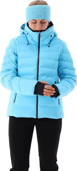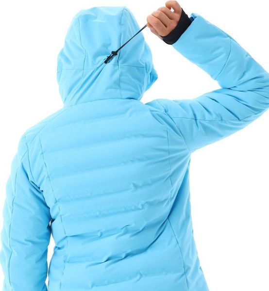 "With its simple yet functional design, the Woman Jacket FIX Hood is not only a real eye-catcher on the slopes, but also in the city. The seamless construction with diagonal, welded inserts and the water-repellent treatment round off the sophisticated design of this versatile jacket"