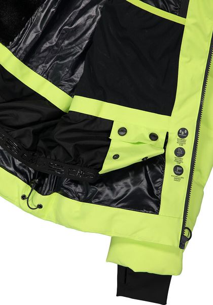"Thanks to the Clima Protect technology and Feel Warm Flock insulation, the jacket offers excellent protection against wind and rain, while the Highloft-Fu00fct lining in the collar and back provides additional warmth. The jacket has an inner mesh pocket, a practical ski pass pocket and two side pockets that offer plenty of storage space. A waterproof front zip with storm flap and thumb loops on the cuffs provide additional comfort and protection."