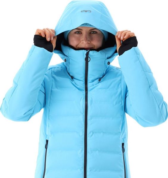 "The Woman Jacket FIX Hood by CMP is the perfect choice for anyone looking for functionalityu00e4t and style when skiing or doing other outdooru00e4tivities. This women's jacket impresses with its technical properties and offers optimum protection from the elements with a waterproof rating of 10,000 and breathability of 10,000. The fixed, adjustable hood and the elasticated snow skirt with non-slip silicone print ensure that you stay warm and dry even in adverse weather conditions"