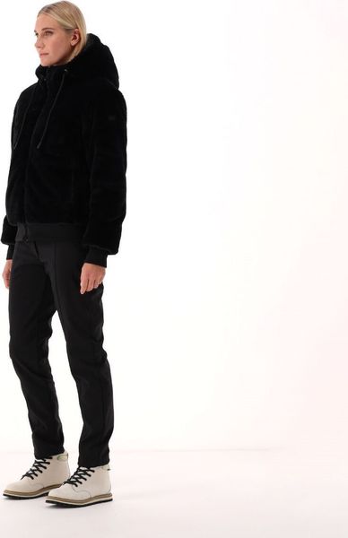 "Elegant women's jacket with synthetic fur hood and feel-warm lining that protects against cold and wet weather."