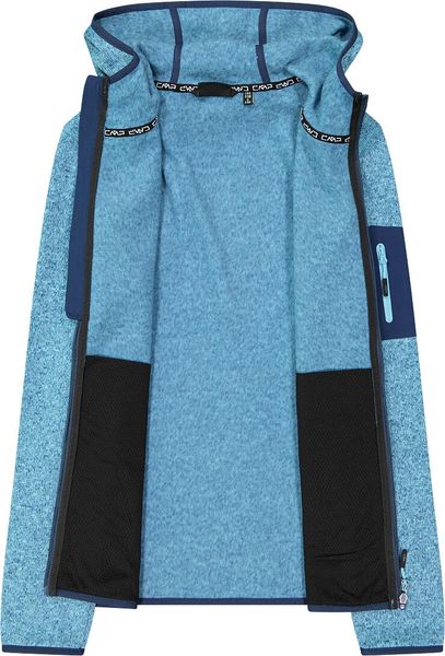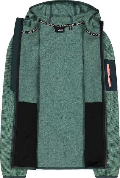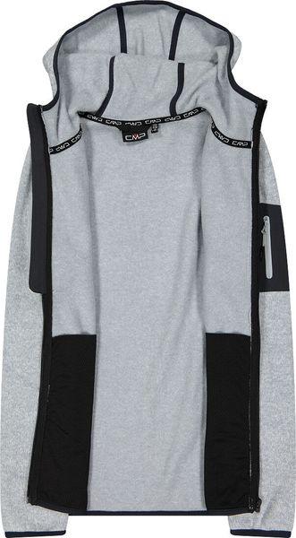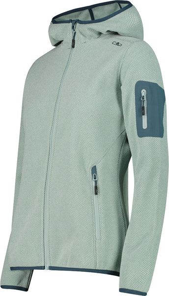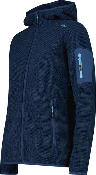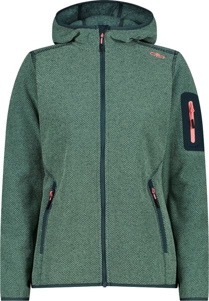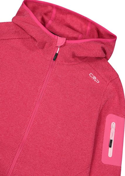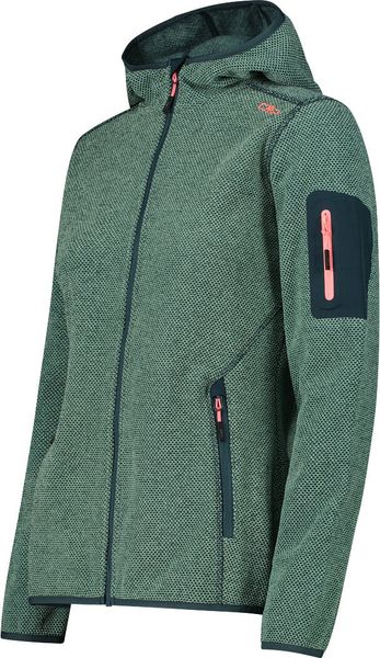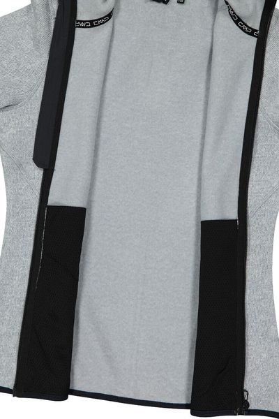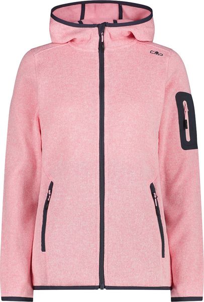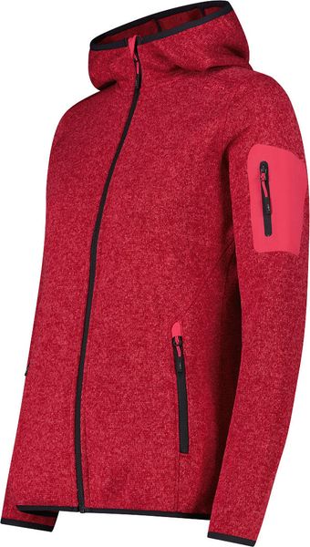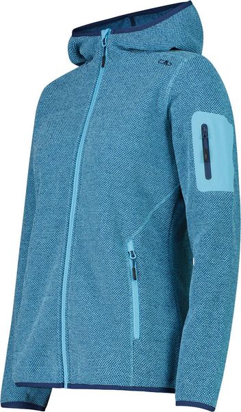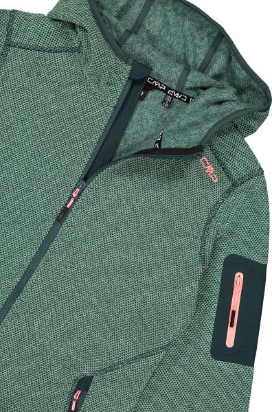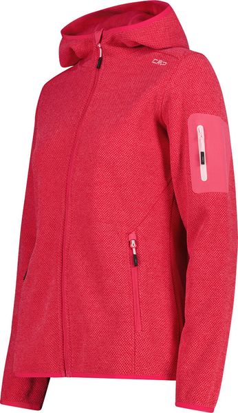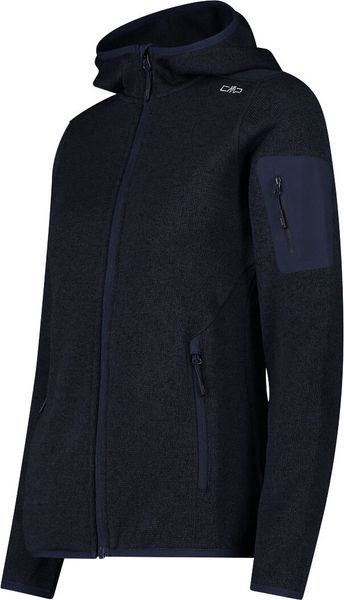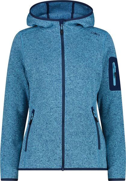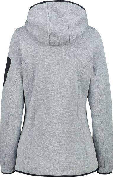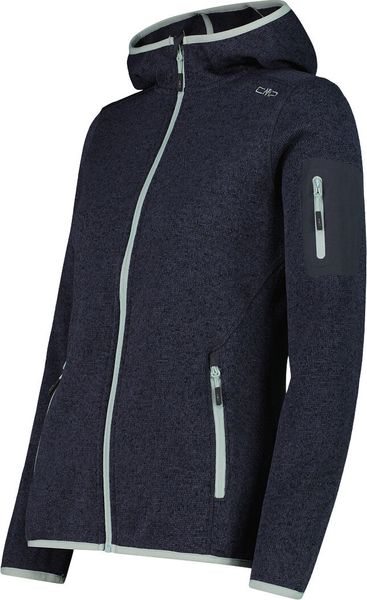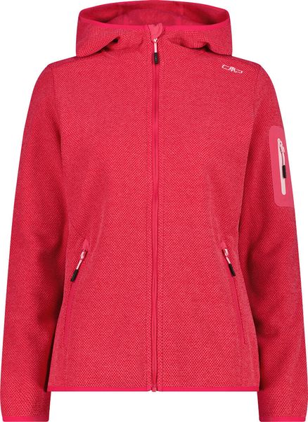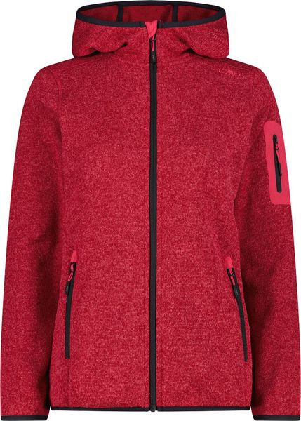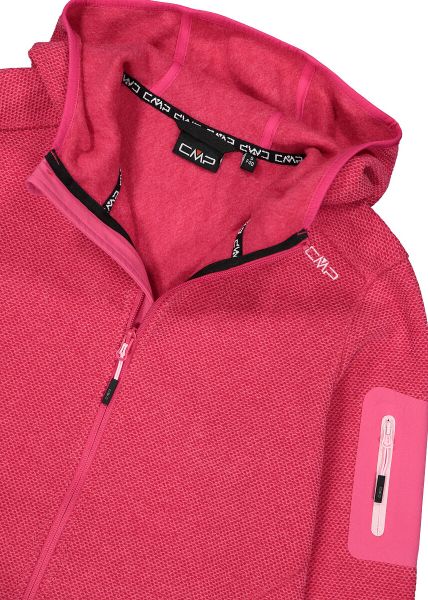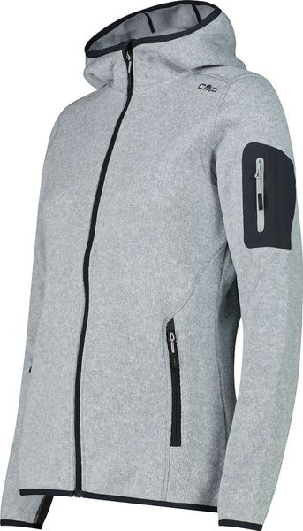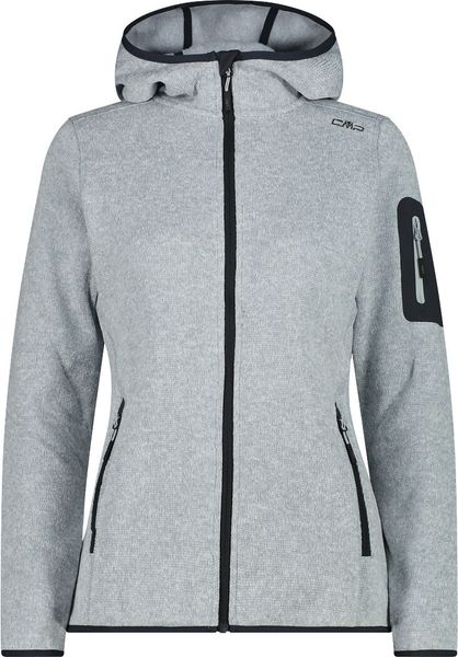 "The Woman Jacket FIX Hood by CMP is a versatile garment that is ideal for all four seasons. This fleece jacket, made with the innovative Knit Tech technology, combines functionalityu00e4t and style. Thanks to the special processing, the fabric looks like mottled wool and gives the jacket an authentic outdoorflair. The fixed hood with elasticated edging ensures optimum protection and comfort in changeable weather conditions"