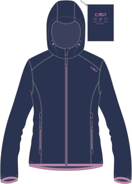 "The Woman Jacket Rain FIX Hood by CMP is the ideal companion for outdooradventures in unpredictable weather. This rain jacket provides reliable protection from wind and rain thanks to its waterproof material with a water column of 5,000 mm. The welded seams and fixed, adjustable hood offer additional protection from the elements. Practical details such as the zipper with storm flap and elasticated cuffs ensure a high level of comfort and protection from the cold."