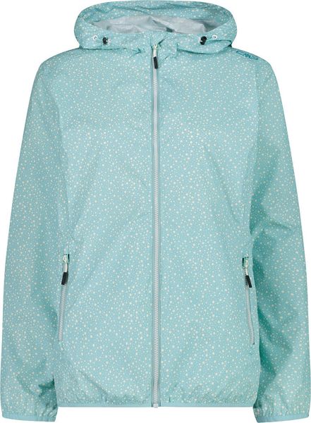 "Lightweight, water-repellent women's jacket with adjustable hood and practical compression pocket for on the go."