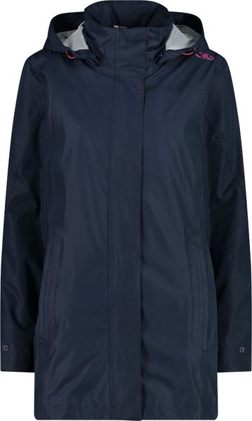 "This elegant women's jacket from CMP is the perfect companion for anyone who wants to protect themselves from wind and weather without sacrificing style. With a wateru00e4ule of 10,000 mm and breathability of 4,000 MVP, the jacket offers optimum protection from rain and wind, while the welded seams provide additional protection against moisture ingressu00e4. The practical double front zip with inner storm flap and press studs ensure that cold air has no chance"