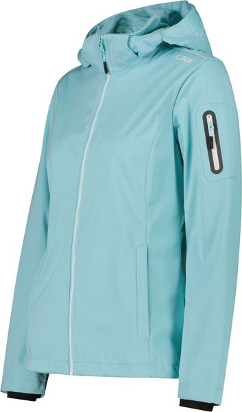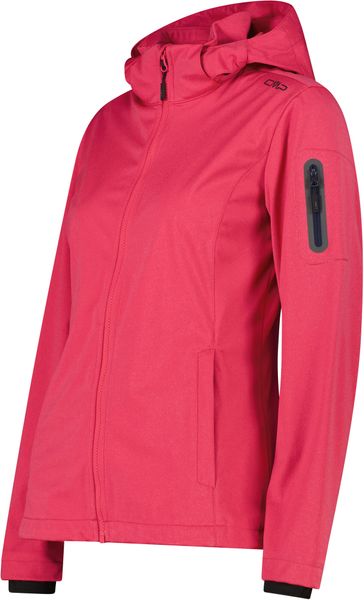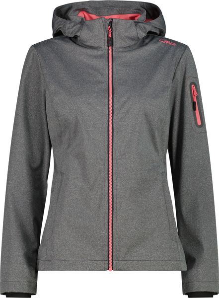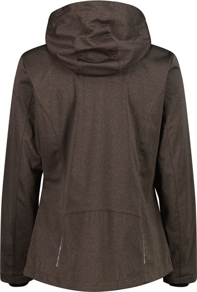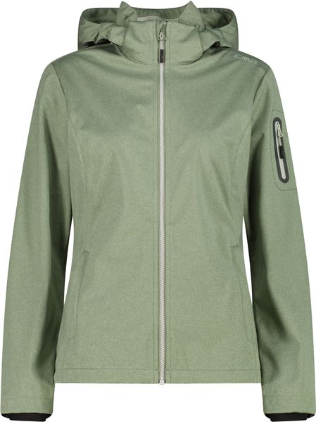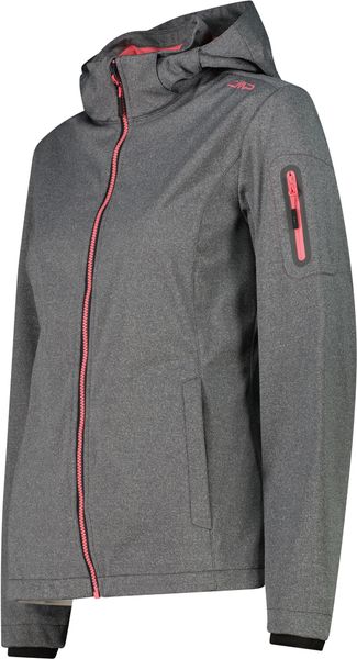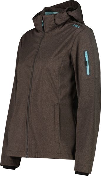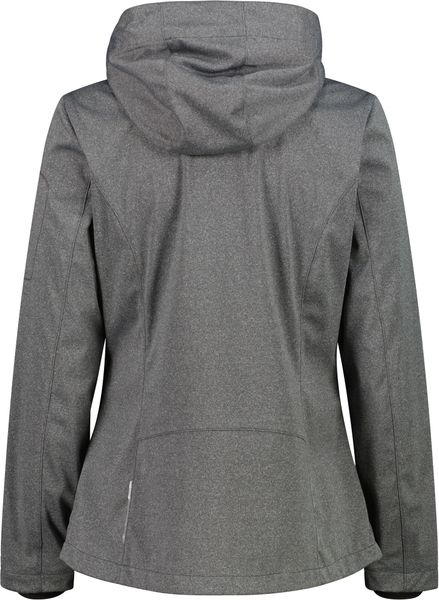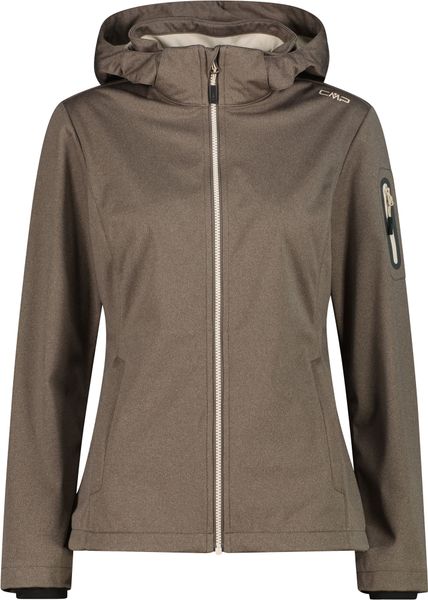 "This stylish and functional women's jacket from CMP is the perfect companion for active days out, whether in the mountains or in the city. The melangeversion of the legendary CMPsoftshell impresses with its tailored cut and lightweight Light Softshellfabric, which weighs just 180 g/mu00b2u00fc. The detachable hood offers additional flexibility, while the three-layer structure of the fabric and the special Clima Protect microporous sleeve laminate ensure outstanding windproofness, waterproofness and breathability. These properties make the jacket an indispensable piece of clothing for everyday use that offers both protection and comfort"