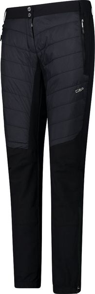 "The Woman Pant Hybrid from CMP is the ideal companion for ski tours and other outdooractivities in fall and winter. Made from durable ripstop fabric, these trousers offer maximum freedom of movement and comfort thanks to 4-Wege-Stretch technology. The upper leg area is equipped with PrimaLoftu00ae Black Eco padding (40 g), which provides additional thermal insulation without restricting mobilityu00e4n. These trousers are not only functional, but also sustainable, as they are part of the "CMP for Planet" initiative"