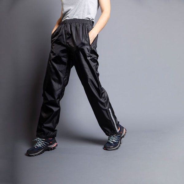 "The CMP rain trousers for women are the ideal choice for anyone who wants to spend time outdoors in rainy weather. Made from high-quality polyester, these trousers offer reliable protection against wind and rain with a water resistance of 3,000 mm. The welded seams and water-repellent fabric guarantee that you stay dry, even in inclement weather. The elastic, adjustable waistband and zippers at the leg ends ensure an optimum fit and make it easy to put on and take off, even over other items of clothing."