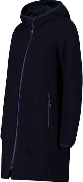 Coat in Recycled Wooltech, a fabric that combines the warmth of wool obtained from recycled materials with the versatility of synthetic fibers. The fabric is laminated on the inside with recycled nylon. A model with a modern urban cut suitable for outdoor activities, but also for everyday. With hood, two side pockets with zipper and elastic cuffs.