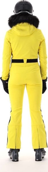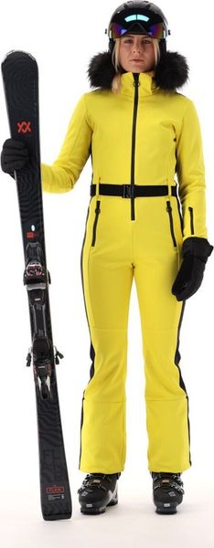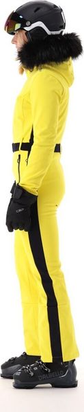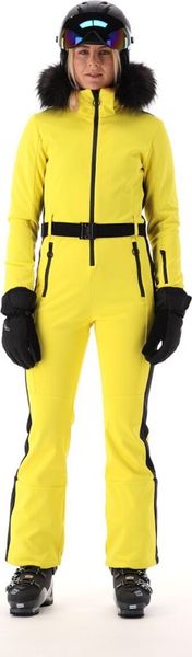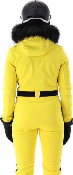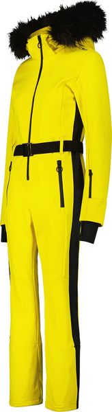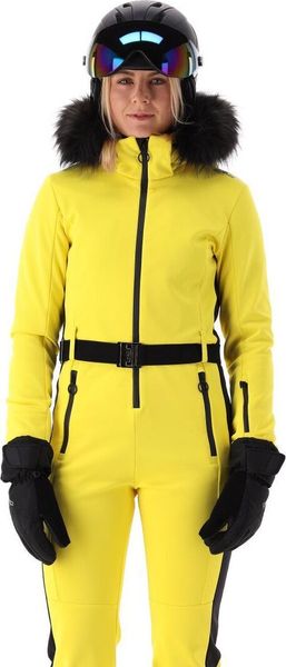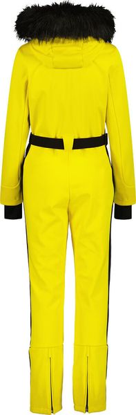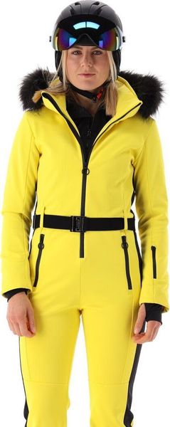 "A special highlight is the detachable and adjustable hood with faux fur trim, which is not only functional but also makes a fashion statement. The suit features a front zip with wind protection and chafing protection flap, which offers additional protection in adverse weather conditions. Practical details such as a ski pass pocket on the sleeve, two side zipper pockets and an elasticated snow guard with non-slip silicone print round off the design."