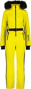 "A special highlight is the detachable and adjustable hood with faux fur trim, which is not only functional but also makes a fashion statement. The suit features a front zip with wind protection and chafing protection flap, which offers additional protection in adverse weather conditions. Practical details such as a ski pass pocket on the sleeve, two side zipper pockets and an elasticated snow guard with non-slip silicone print round off the design."