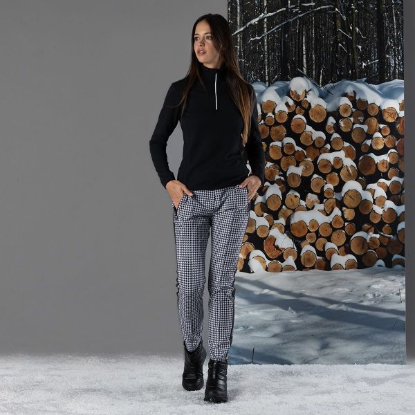 "This stylish stand-up collar sweater with half-length zipper is the perfect choice for women who love skiing and don't want to compromise on comfort and functionality. Made from the innovative Grid-Tech fabric, this pullover not only offers excellent thermal insulation, but also an ideal fit thanks to the stretchmaterial it contains. This allows for unrestricted freedom of movement, whether you're on the slopes or relaxing in the hut."