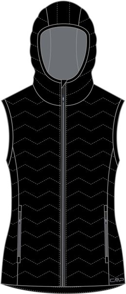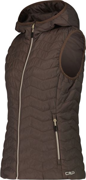 "The padded women's vest with hood from CMP is the ideal companion for anyone who likes to be out and about in nature. Thanks to Feel Warm Flat technology, it not only offers excellent thermal insulation, but also maximum freedom of movement. A water-repellent treatment ensures that you stay dry even in damp conditions. The elasticated cuffs and the front zipper with chafing protection for the chin also increase comfort. Functional zippered pockets offer enough space for small items that you need when hiking or other outdoor activities. This vest is perfect for layering and keeps you nice and warm even in cold weather."
