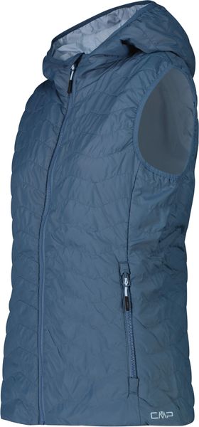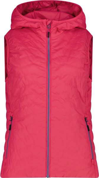 "Padded women's vest with hood, offers warmth, freedom of movement and is water-repellent u2013 ideal for outdoor activitiesu2013."