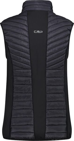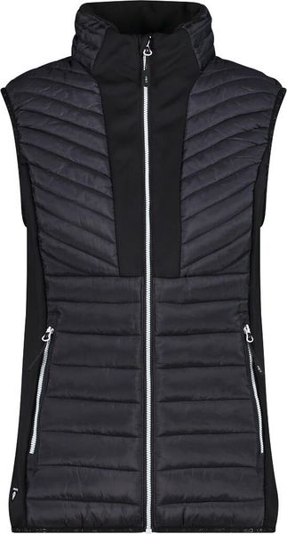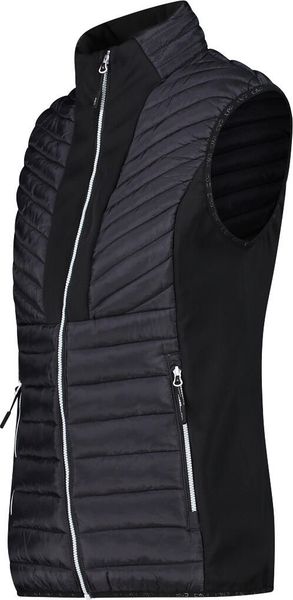 Hybrid vest for use in winter sports activities such as trekking, hiking, fast hiking and mountaineering. Depending on the intensity or outdoor temperature, the garment can be used as a middle layer or outer layer. The lightweight ripstop and nylon fabric (40 g/sqm) is combined with a Primaloft Recycled Black Thermoplume padding, made of 100% recycled material, placed on the front, back and underarm. The garment protects not only from the cold, but also from water and wind thanks to the water repellent treatment. The ergonomic fit gives an extremely comfortable feeling. The color block effect and the mix of diagonal and horizontal padding stripes make the jacket modern and suitable for any occasion.