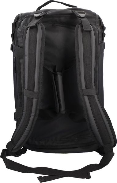 "Versatile and robust 40L duffel bag with expandable volume and carrying options as a duffel bag or backpack."