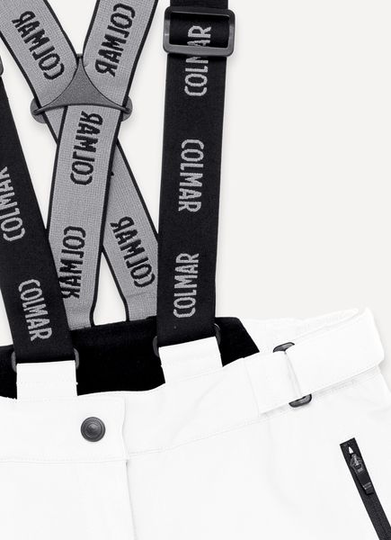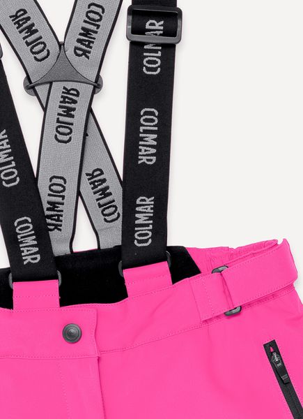 "Experience ultimate comfort and freedom of movement on the slopes with these high-quality ski pants from Colmar. The Girl Salopette Pant is specially designed for young female skiers and offers a perfect fit on every descent thanks to the mechanical stretch fabric. With sustainable Ecosoft padding made from 85% recycled postconsumer fibers, these pants keep you warm even on cold days. The adjustable waistband and elasticated trouser straps allow for an individual fit so that the trousers always fit securely"