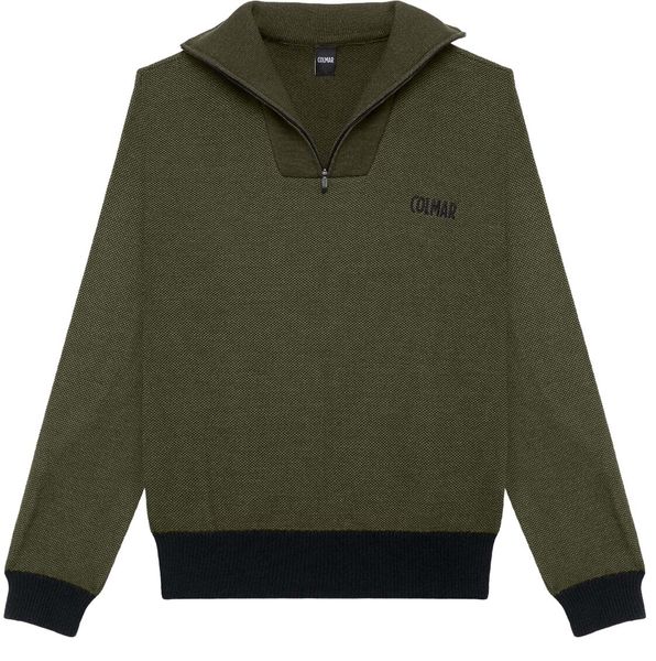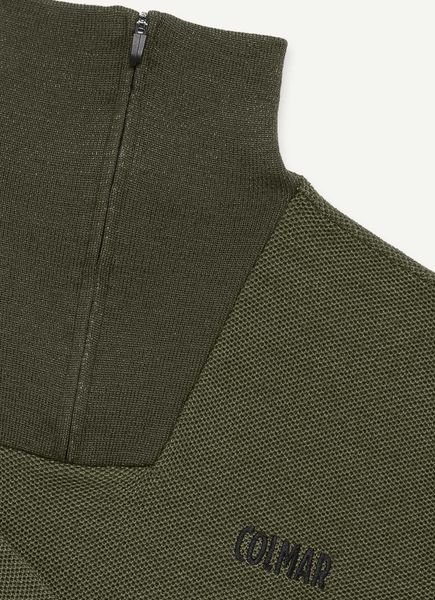 "This men's sweater is made from a wool yarn that is knitted with polypropylene and thus offers high technical properties. It combines warmth and functionality. The high zipper collar adds a sporty and versatile touch, while the embroidered logo on the chest rounds off the design with an unmistakable style feature."