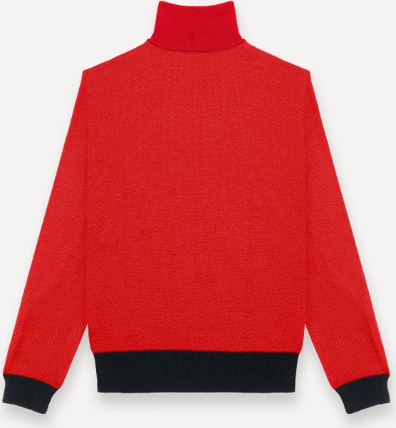"This men's troyer made from soft wool and technical polypropylene yarn offers warmth and a distinctive look for a stylish mountain experience."