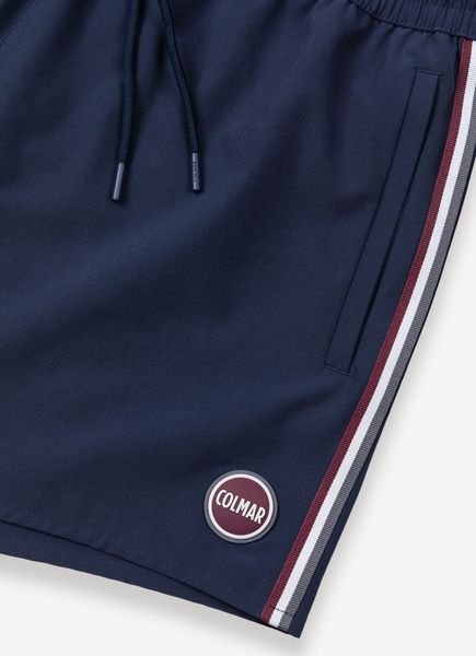 The design of the swim shorts is both functional and fashionable. The elasticated waist with an internal drawstring allows you to adjust the fit individually, while the practical side pockets provide additional storage space. A special highlight is the tricolored band on the sides, which gives the shorts a sporty touch. The Colmar brand logos, a patch on the left leg and a "C" patch on the right back give the shorts an unmistakable look.