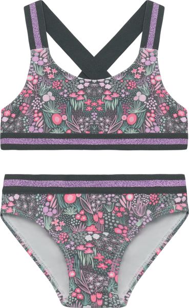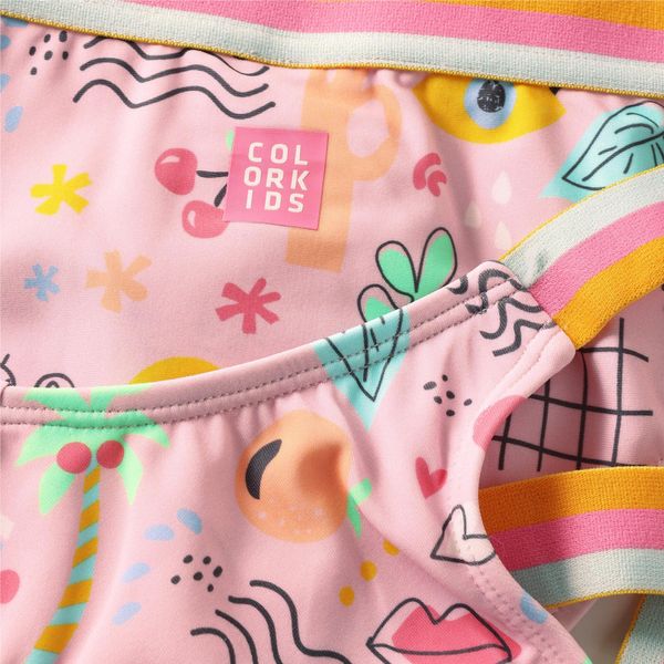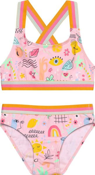 "This colorful bikini from Color Kids is the perfect choice for all young water sports enthusiasts who value comfort and freedom of movement. The bikini W. Contrast Straps AOP 720341 impresses with its vibrant all-over print design, which is not only fashionable but also functional. The elasticated straps, underbust band and waist ensure a perfect fit and support active movements in the water and on the beach."