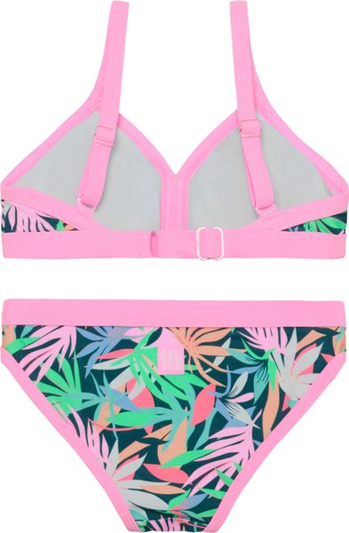 "Discover the colorful bikini set from Color Kids, perfect for young water rats. This stylish set features a vibrant all-over print that harmonizes with plain trims and straps. The top is equipped with adjustable straps for a personalized fit and features lightweight, removable padding for added comfort."
