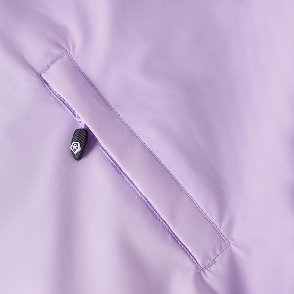 "The detachable and adjustable hood is particularly practical and, together with the adjustable waistband, offers optimum protection and flexibility. All of the jacket's seams are sealed to prevent water from penetrating and reflective details increase visibility in low light conditions. The jacket features zippered pockets that provide enough space for small items and a small fabric guard on the chin for added comfort."