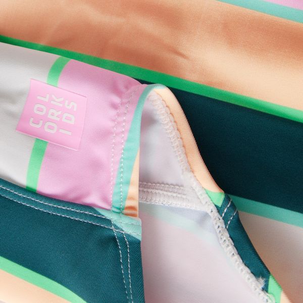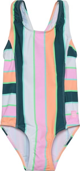 "The Sporty AOP 720363 swimsuit from Color Kids is the ideal companion for all young water sports enthusiasts. With its vibrant all-over striped print, it attracts everyone's attention on the beach or in the pool. The swimsuit is specially designed for girls and offers excellent freedom of movement and comfort thanks to its stretchy material composition, so your daughter can feel completely carefree when swimming or playing in the water."