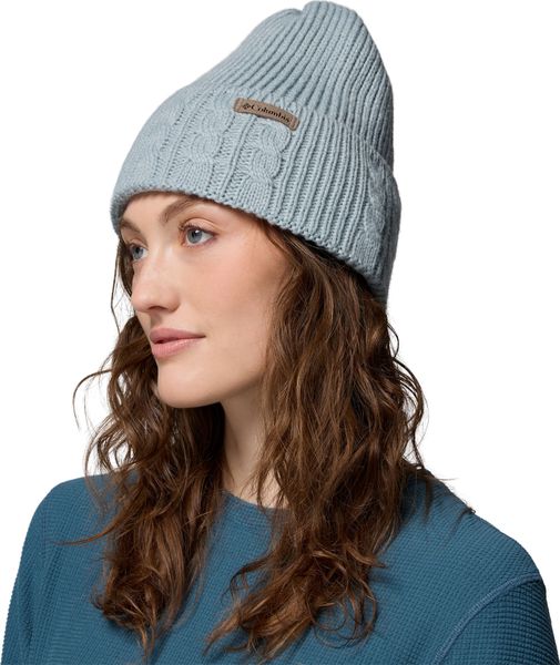 "The Agate Pass Cable Knit Beanie from Columbia is the perfect choice for women who want to combine style and functionality. With its elegant CableKnit finish, this beanie not only offers a timeless, classic look, but also reliable protection against the coldu00e4lte. The integrated, cozy headband is lined with fleece and ensures that your ears stay comfortably warm even on the coldest days. Made from high-quality fleecematerial, the hat is not only soft and comfortable, but also hard-wearing and easy to clean. Whether you're out for a walk in the city or on outdoor adventures, this hat will quickly become an indispensable companion for the cold season."
