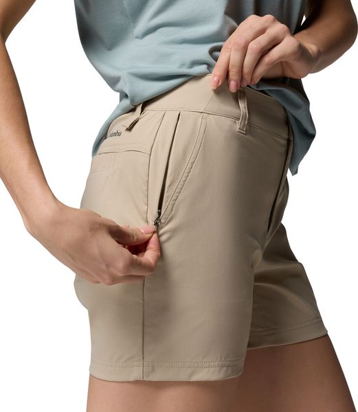"The Leslie Falls Short II from Columbia is the ideal companion for anyone who likes to be out and about in nature. Whether hiking or doing other outdoor activities, these shorts offer excellent protection against water and dirt thanks to the OmniShieldu2122 technology. This keeps you dry and clean even in unpredictable weather conditions. The mid-rise fit and gusset detail ensure optimum comfort and freedom of movement, so you can concentrate fully on your adventureu00f6nnen."