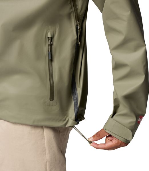 "The jacket's wide range of adjustment options are particularly practical: an adjustable hood with drawstring reliably protects against wind and rain, while the adjustable cuffs and drawstring hem ensure a perfect fit. For additional ventilation and comfort, the underarm vents are equipped with ventilation openings that ensure pleasant temperature regulation during strenuous hikes."
