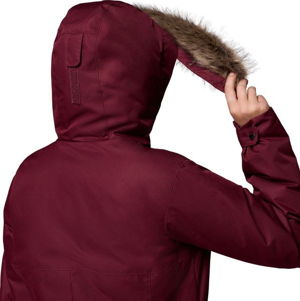 "The jacket is equipped with a variety of practical features that increase your comfort. These include an adjustable storm hood with a cosy sherpa lining and detachable faux fur, a chin guard and adjustable cuffs for a customizable fit. The 2-Wege-Reiu00fcdf fastening at the front allows flexible ventilation and makes it easier to put on and take off, while the zipped pockets at the chest and back provide secure storage space for your personal itemsu00e4nds."