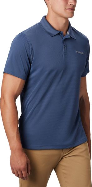 "Men's hiking polo with efficient moisture management for dry comfort during summer activities."