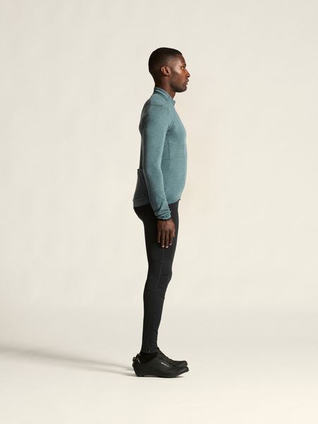 "High-quality long-sleeved cycling jersey made from merino wool and recycled polyester, ideal for comfortable and high-performance rides."