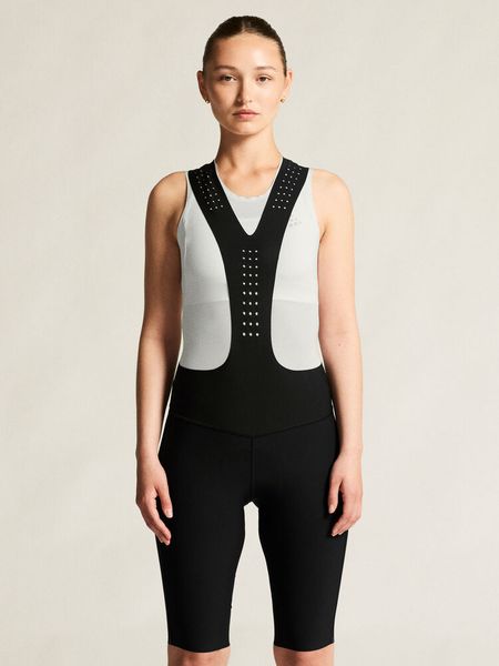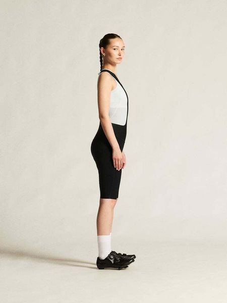 - "Bib solution in 4-way stretch fabric and lazer cut edges for optimal comfort."