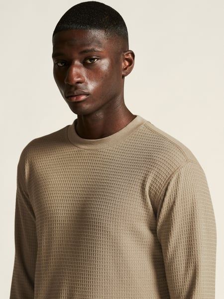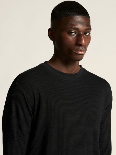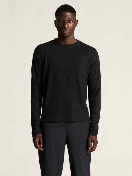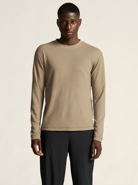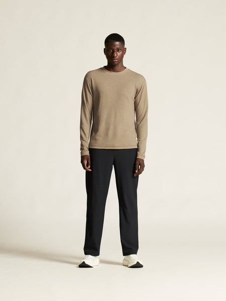 "Long-sleeved crew neck shirt made from a warm lyocell/wool blend for men that is comfortable to wear."